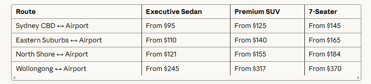 Cars on Demand: Fixed price quote upfront for Wollongong to Sydney Airport. No distance limits, no surprises, no complicated payment arrangements.